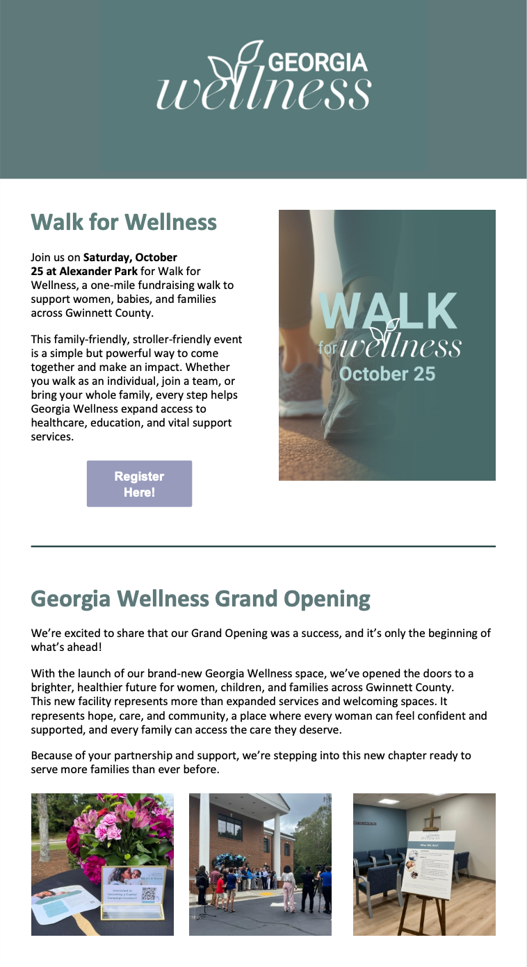 About The ClientGeorgia Wellness is a community-centered healthcare organization dedicated to supporting families at every stage of life. Serving Gwinnett County for more than 30 years, the organization has impacted over 22,000 individuals through comprehensive medical care, education, and family support services. Their new 12,500+ square-foot facility expands that mission even further, offering women’s health, pediatric care, mental health services, parenting classes, youth programs, material assistance, and a welcoming baby boutique, all under one unified brand. With a vision for a Georgia where no mother feels alone and every family has access to equitable, high-quality care, Georgia Wellness is building a movement rooted in compassion, excellence, and community-driven healing.